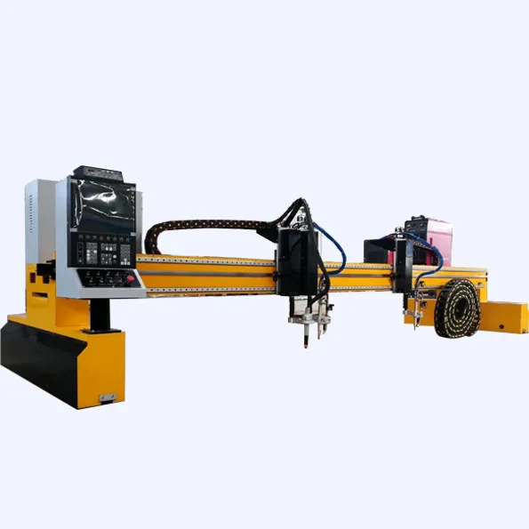 This gantry plasma cutting machine is mainly used for processing large-size and relatively thick metal plates. It can be combined with flame cutting (edge cutting thickness up to 200mm). The beam of the equipment is quenched, making it suitable for both indoor and outdoor use. It can cut carbon steel, stainless steel, alloy steel, aluminum and other non-ferrous metal plates.