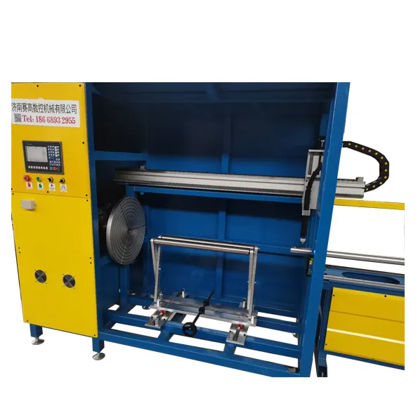 This is a CNC round pipe cutting machine with customizable pipe diameter and length. It is specially designed for cutting thin-walled round pipes, and can be equipped with either a